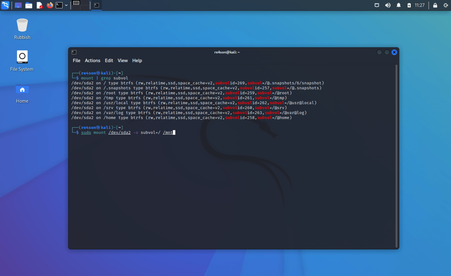 Kali Linux BTRFS Installation Steps
