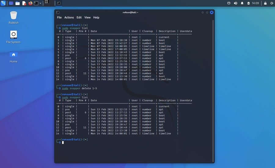$ sudo snapper list -aDelete snapshots