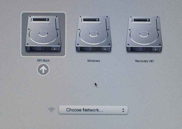 When the boot menu appears, if everything works as expected, you should see two volumes: