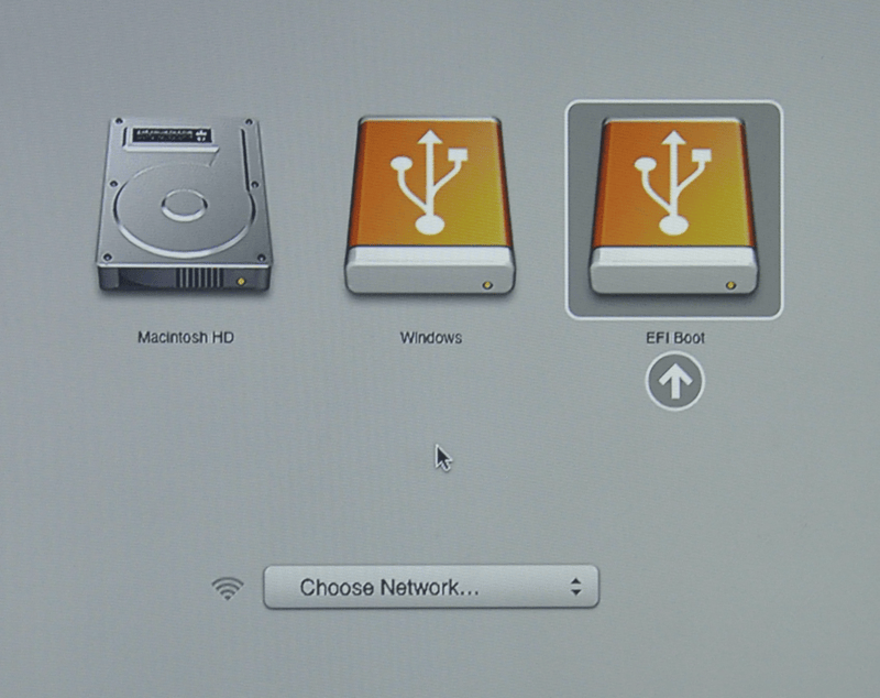 To start resizing, make sure you insert your Kali Linux installation medium and power on the device. Immediately press and hold the Option (or Alt) ⌥ key until you see the boot menu (rEFInd if installed, else the default macOS/OS X). You may or may not have a Recovery HD depending on your macOS/OS X setup.