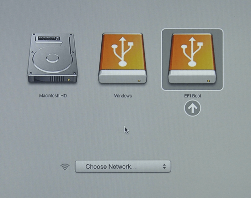 When the boot menu appears, if everything works as expected, you should see two volumes: