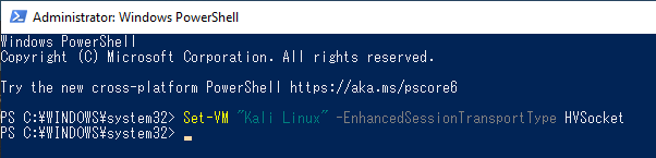 :~$ kali-tweaksIn the menu, select Virtualization, then Configure the system for Hyper-V enhanced session mode. And that’s all there is to do on Kali’s side.