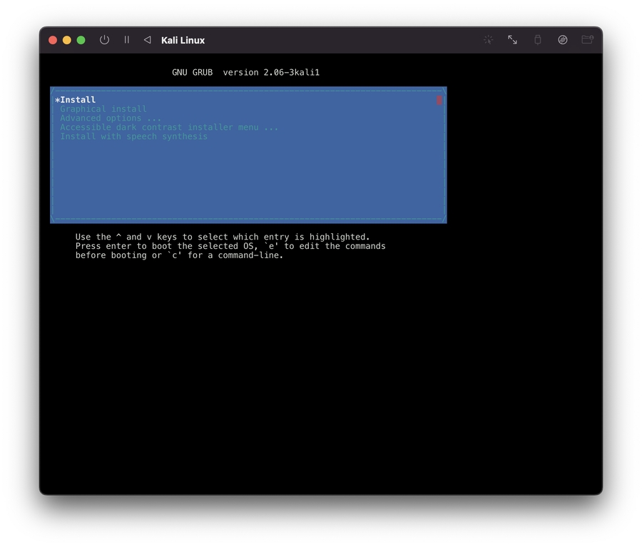 Now we can save and press play on the VM. Once prompted, we select “Install”:
